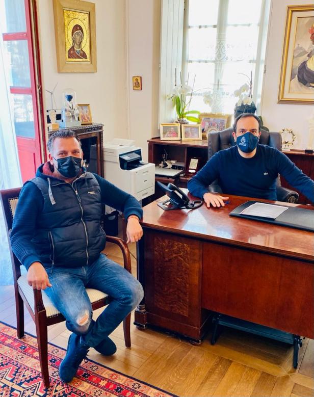 Σε συνέχεια του προγραμματισμού των επαφών του Σωματείου με όλους τους τοπικούς φορείς των νησιών μας, πραγματοποιήθηκε συνάντηση μεταξύ του εκπροσώπου της Ένωσης Ναυτικών Πρακτόρων Ελληνικών Νήσων (Ε.Ν.Π.Ε.Ν.), κ. Πανταζόπουλο Κωνσταντίνο με τον Δήμαρχο Μυκόνου κ. Κουκά Κωνσταντίνο.
